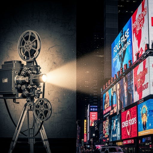 Moving images live everywhere now. On a 50-foot animated billboard in Times Square. On a 6-inch phone screen on the subway. In your email inbox. The canvas keeps changing. The storytelling instinct does not.