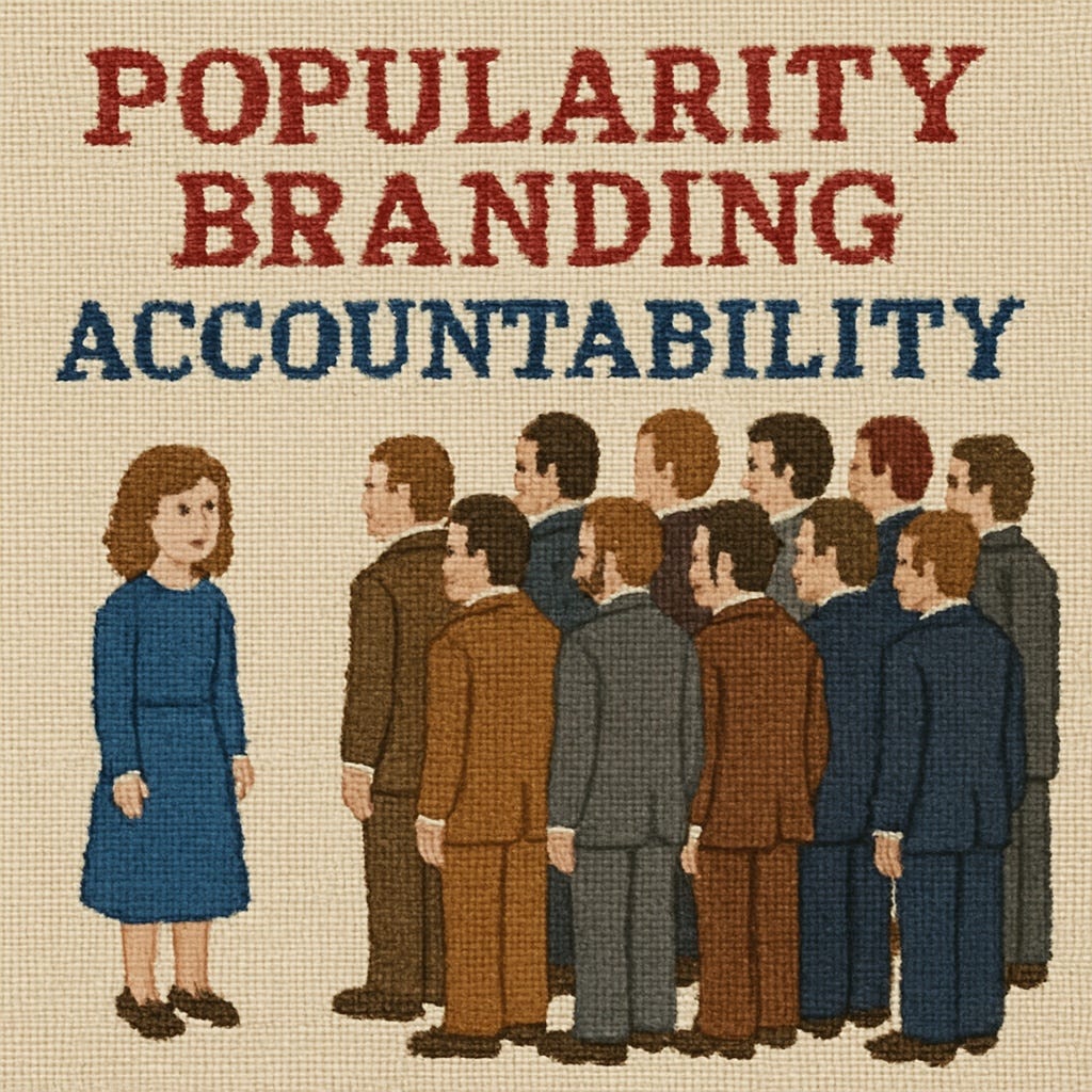 Popularity, Branding, Accountability, "Manjacking" & Needlepoint